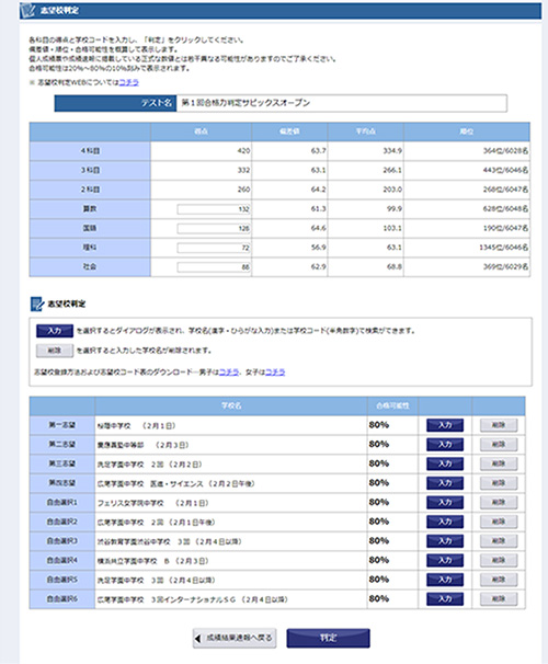 志望校判定シミュレーション