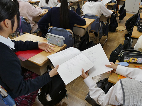 佐々木 週4コマです。代数と幾何には分けず、2分野を柔軟に行き来するのが特徴です。教科担当同士で「次の試験までにこの単元は終えましょう」という目安は決めていますが、そこに至るプロセスは各教員の裁量に任されています。教科書を使う教員もいれば、オリジナルプリントを使う教員もいますし、「ここは絶対に押さえておいてほしい」というポイントも教員によって異なります。このような自由度の高い授業を継続するためには、教員も絶えず勉強を続ける必要があります。授業を受けた生徒に「この先生は本当に数学が好きなんだな」と伝わるような、教員の個性が光る授業をめざしています。