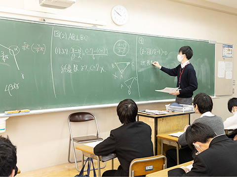 堤 中1・中2は代数が3時間、幾何が2時間で、中2はそれに加えて数学演習という授業が1時間あります。そして中3からは高校の内容に入り、数学Ⅰが3時間、数学Aが3時間となります。私たちが気をつけているのは、クラスや学年の違いによって学習内容に偏りが出ないようにすることです。オリジナルのテキストを活用しているのもそのためですし、近年は一人の教員が学年のすべての授業を担当するケースも増えています。